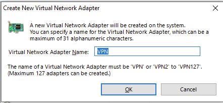 - Namen für den Adapter eintragen oder "VPN" lassen, mit OK bestätigen