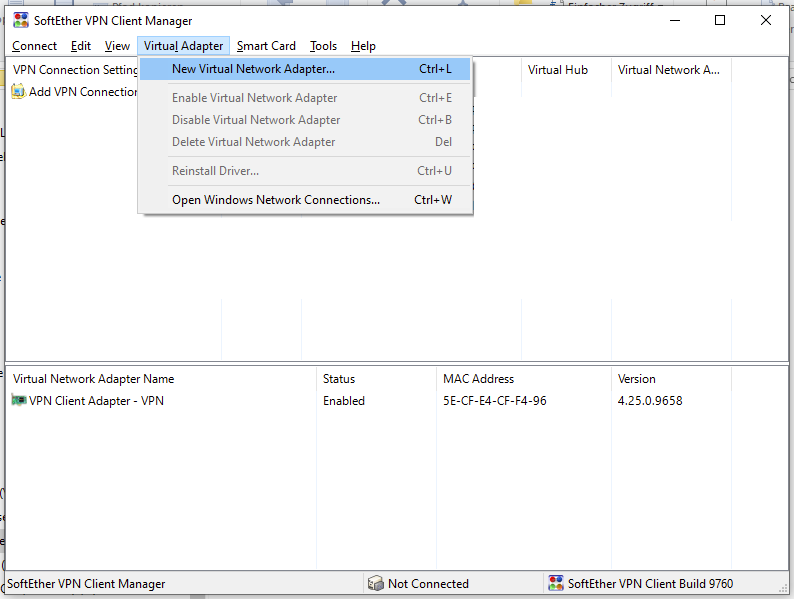 - Neuen Virtual Network Adapter erstellen:
