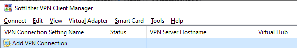 - Das SoftEther VPN Client Manger-Fenster öffnet sich (siehe Bild)